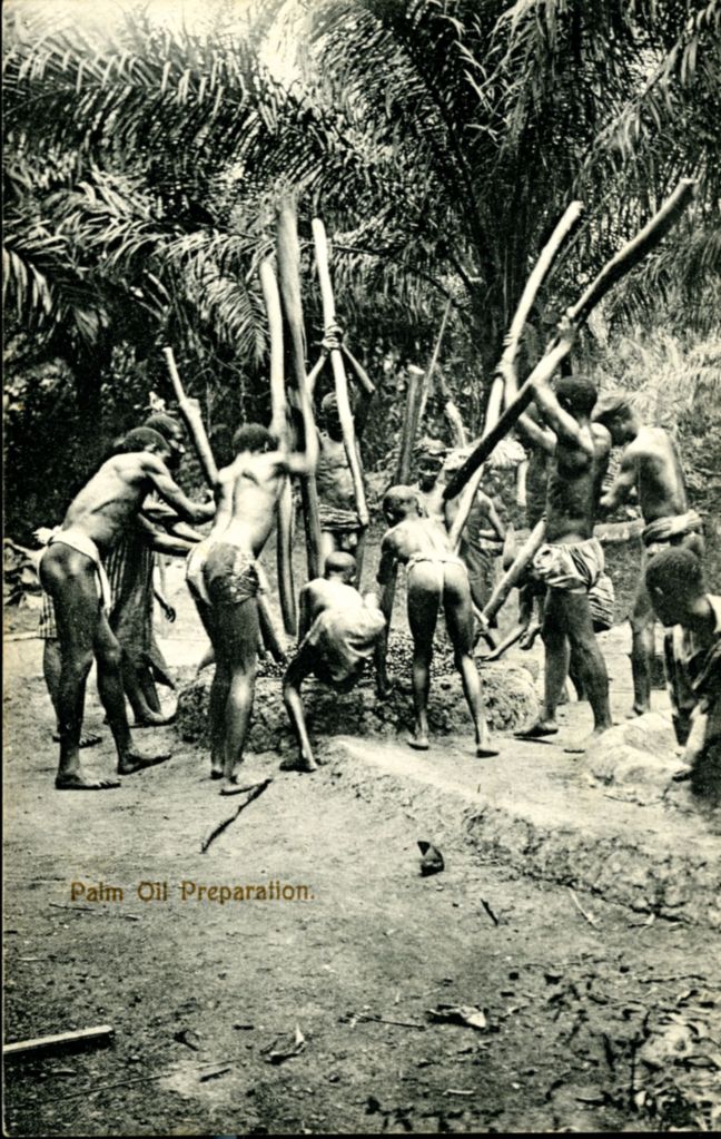 Men and women pounding palm fruit in a pit (Ghana ca. 1910, author’s collection)